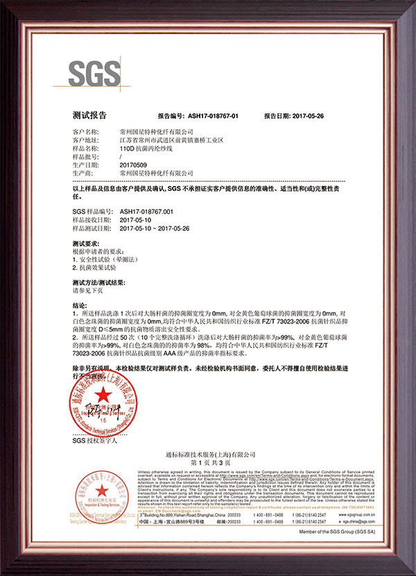公司以自產丙綸超細旦絲、DTY絲為依托,提供100%丙綸功能面料及丙綸交織混紡功能面料,是紡織用較新環保素材,為國內外各大運動品牌服裝、內衣、家紡企業之優選供應商。